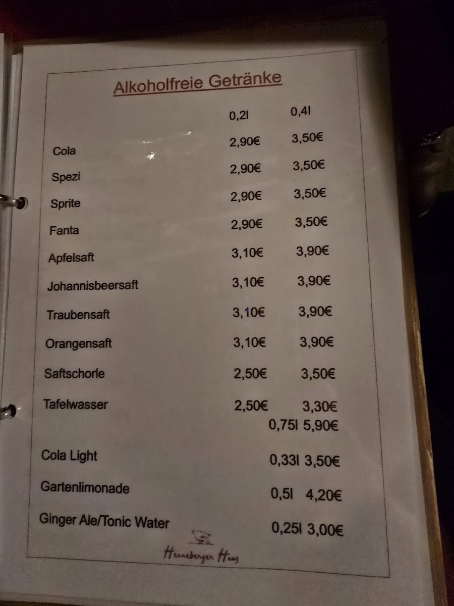 Gaststatte Henneberger Haus Menu